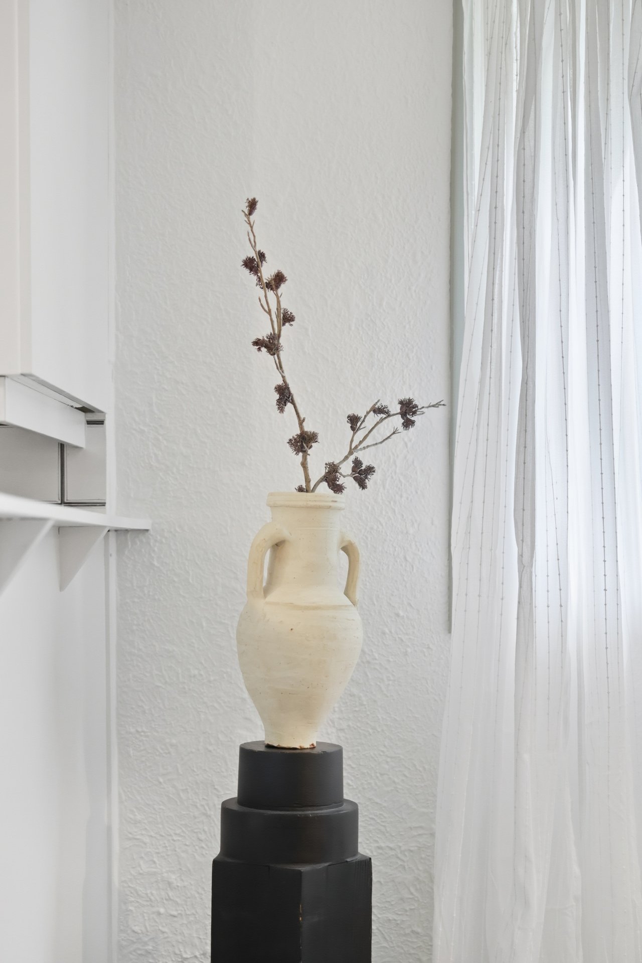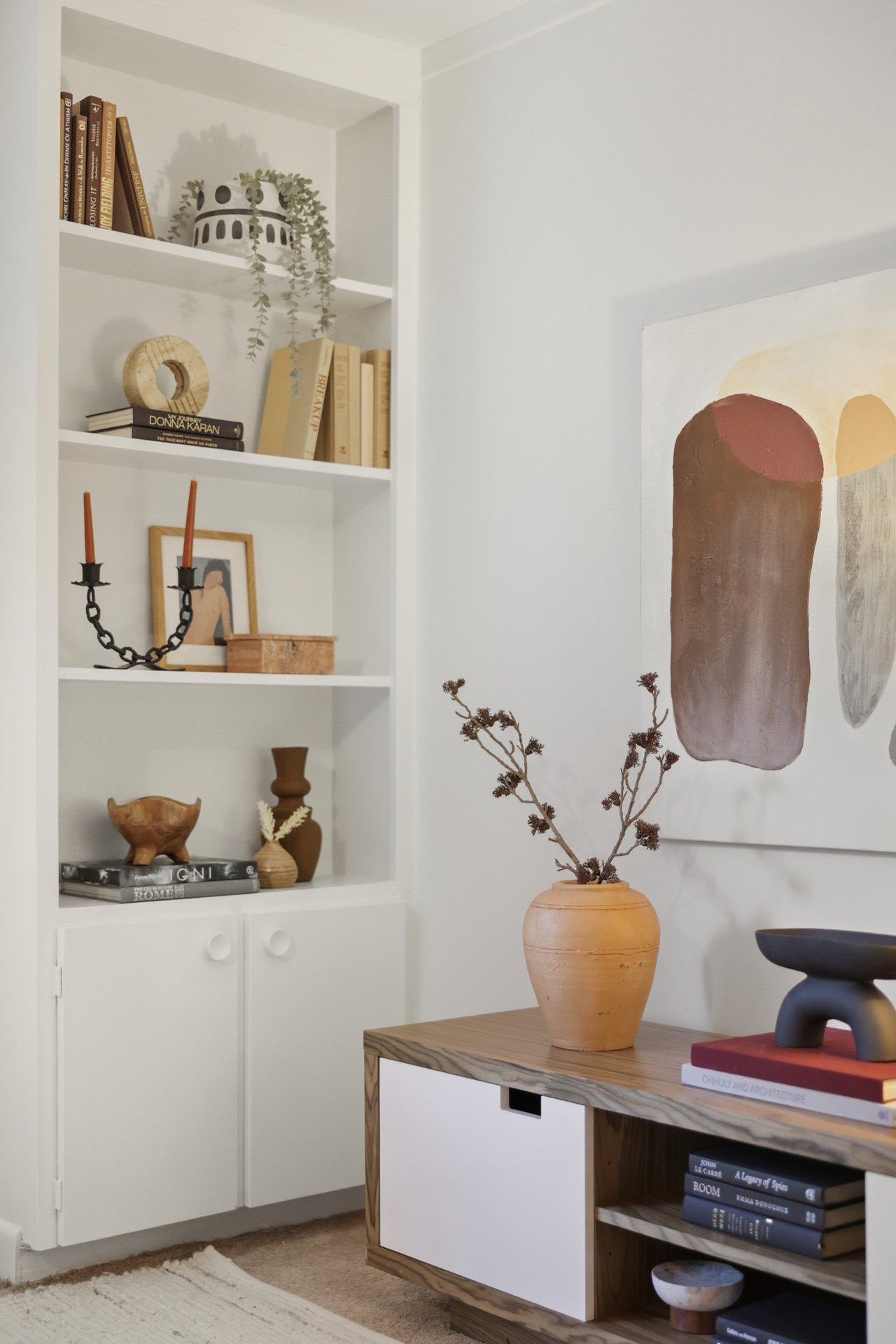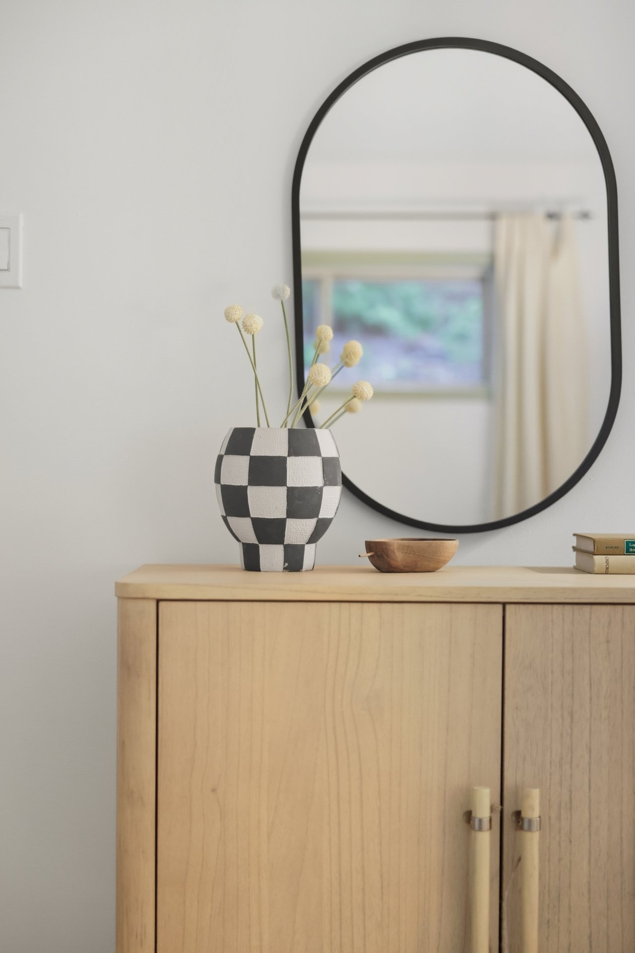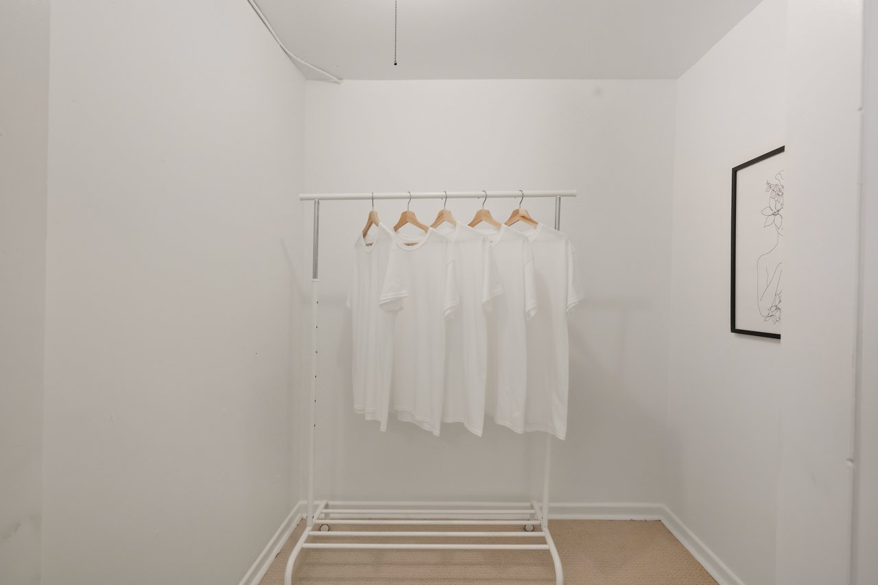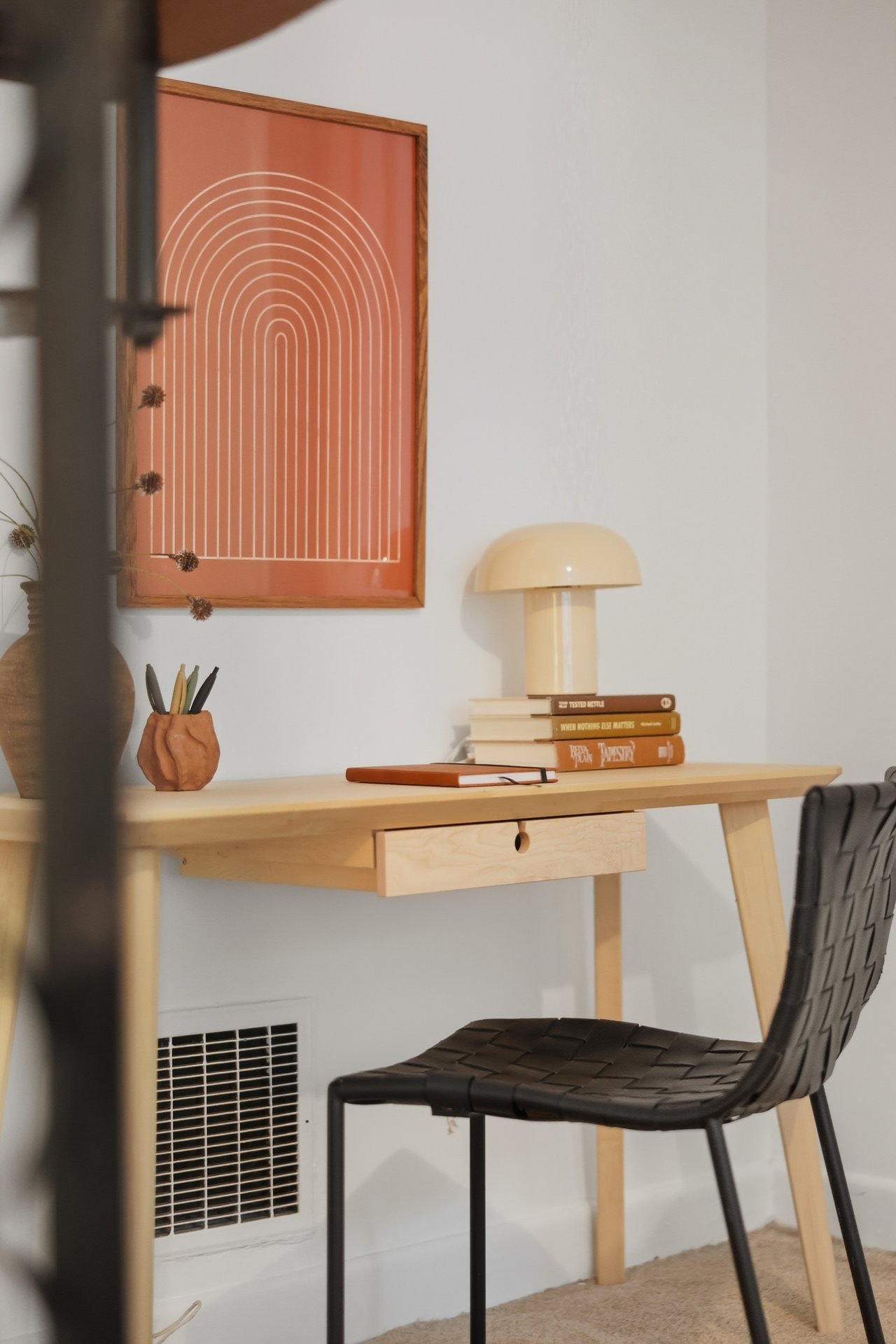 Inside, the kitchen is surprisingly efficient, designed to make the most of every inch, with a large window framing the trees and a side door to the porch. The layout makes daily life feel effortless, with flexible spaces for guests, work, or creative pursuits.