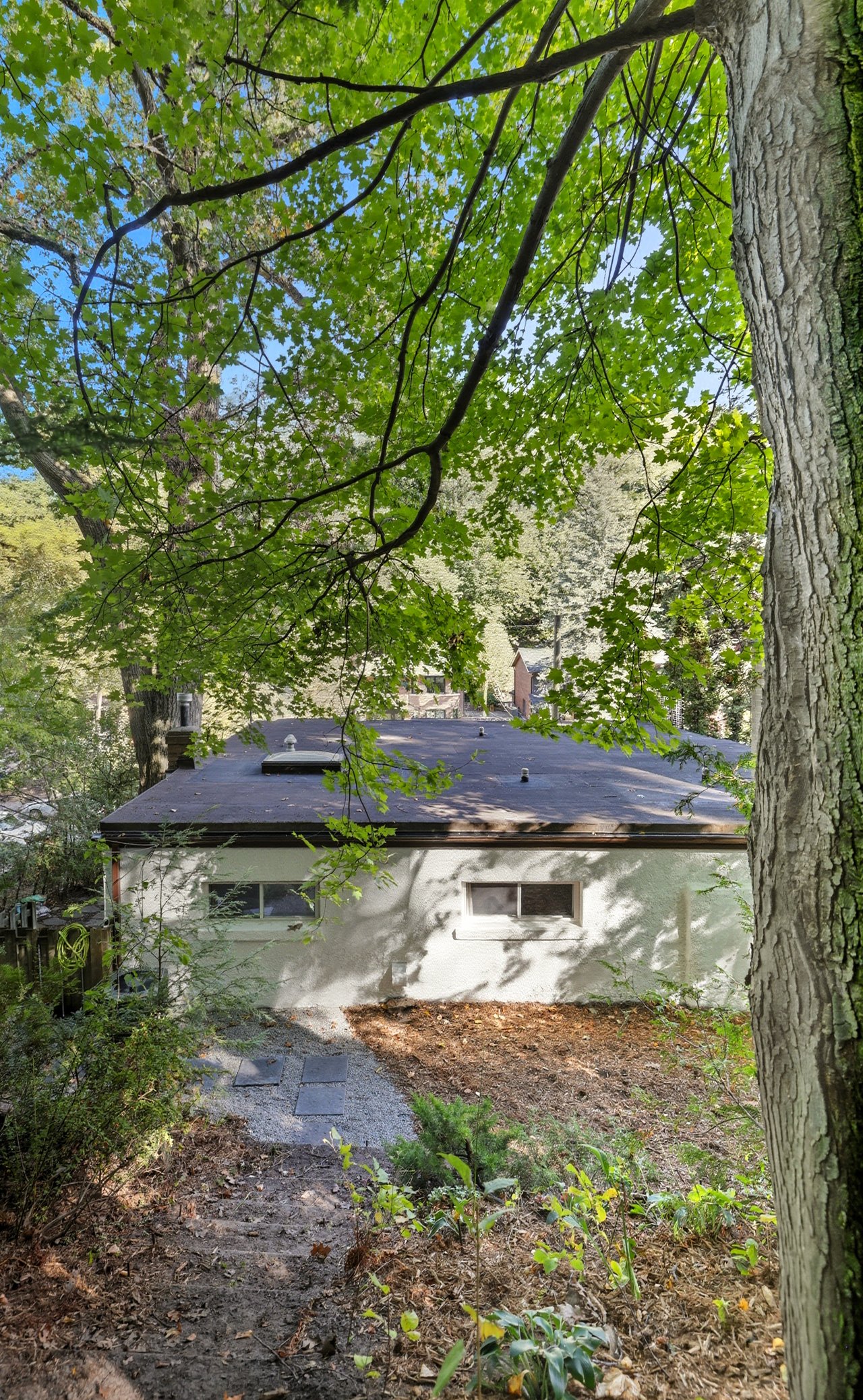 From its raised position and leafy views to the sunlight that filters through the trees and dances across the walls, theres an easy, peaceful rhythm here. Sitting on a wide 38-foot lot, surrounded by greenery and songbirds, it feels worlds away while being moments from the boardwalk, lake, and every east-end essential.