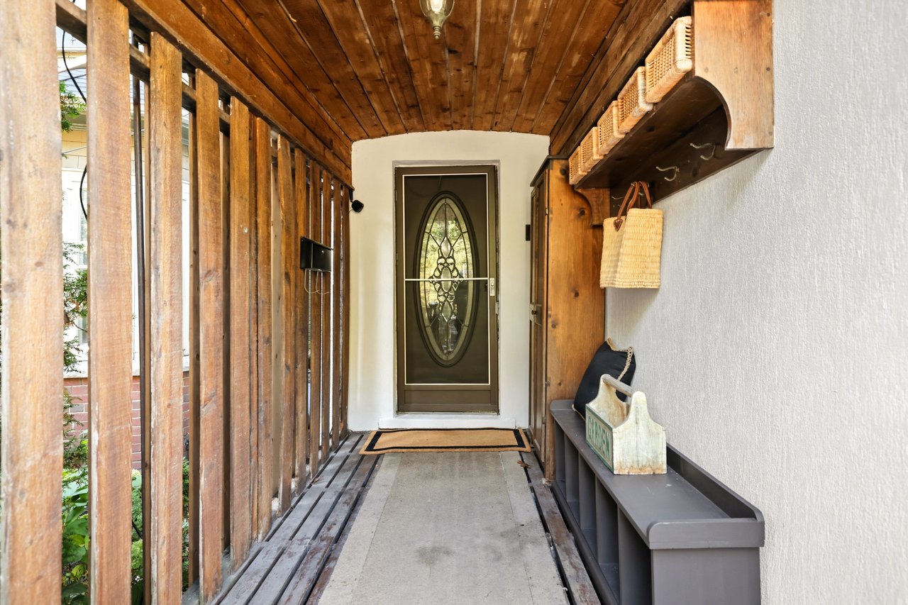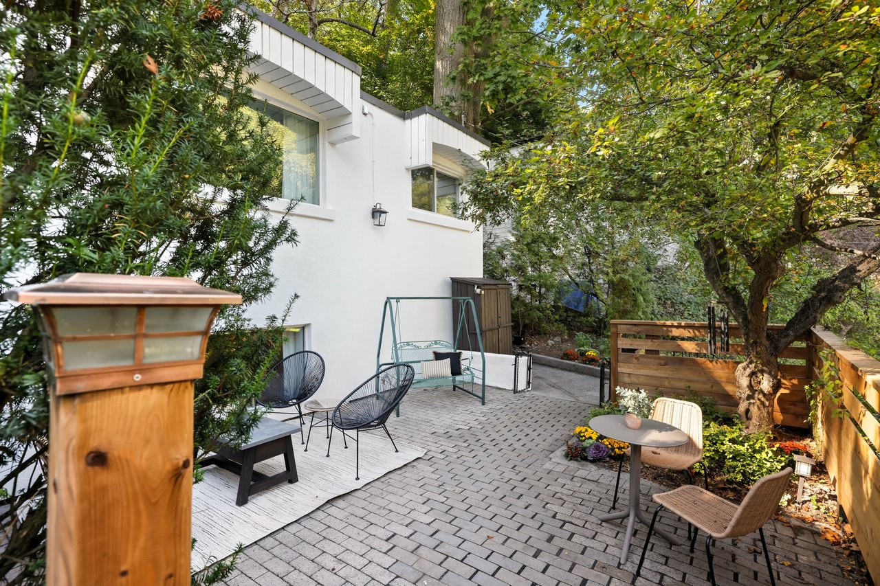 Tucked high above a quiet dead-end street at the east end of the Beaches, this detached two-plus-one-bedroom, two-bathroom bungalow feels more like a cottage than a city home. Originally built in the style of early California stucco houses, it carries a timeless charm that blends beautifully with its natural surroundings.