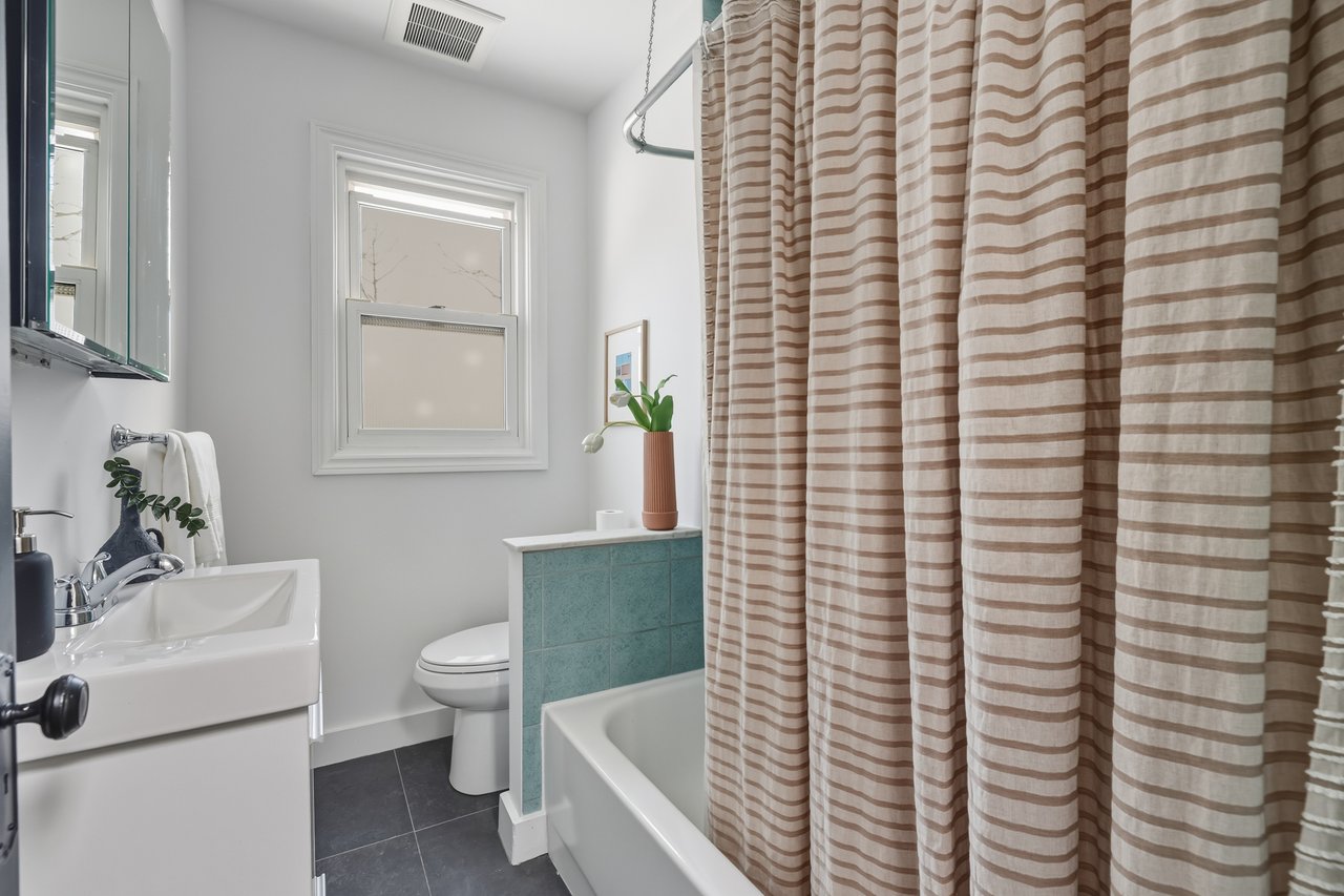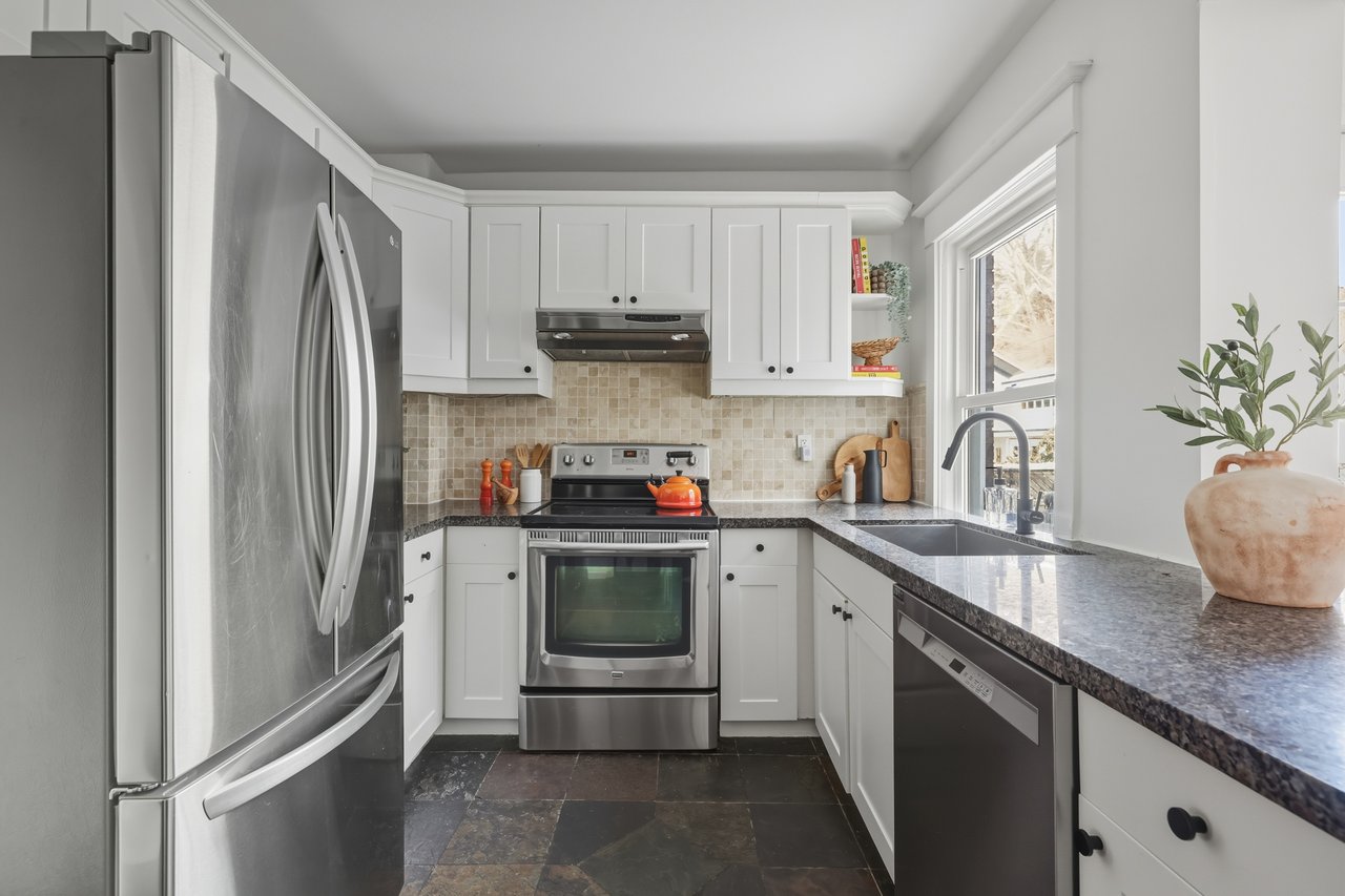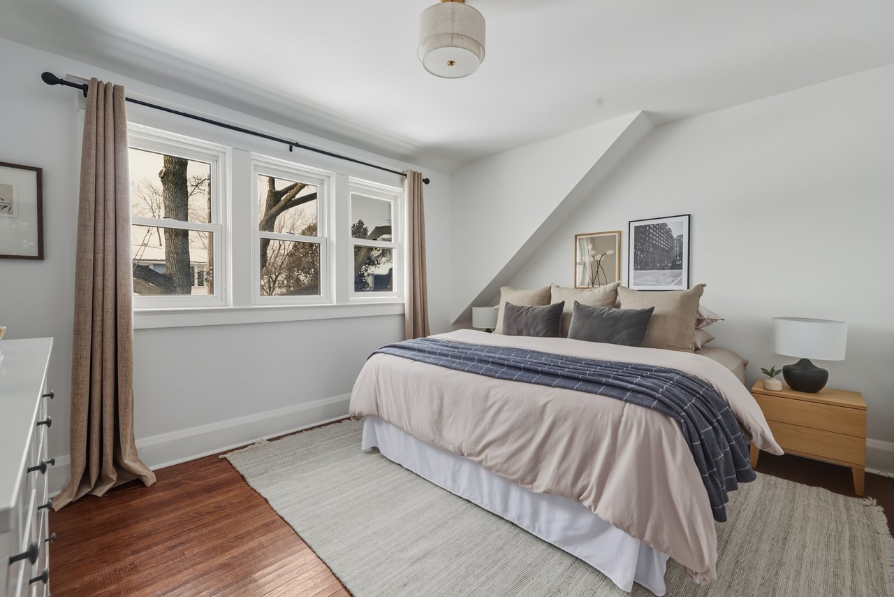 Upstairs, three generously sized bedrooms (each with its own closet) make space for the whole family.