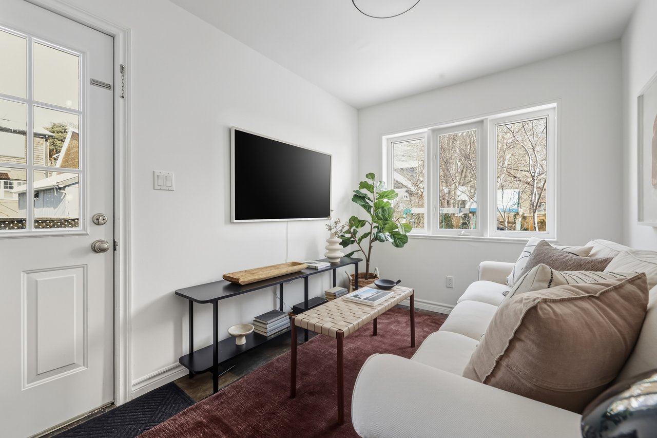 Outside the front door, the TTC is steps away. With brunch at Lazy Daisy's, coffee at Dark Pony, lunch and a beer at Godspeed, Sanagan's for the butcher run, Juniper Bakehouse for the best sourdough, and The Pantry for cheese all within walking distance, you may not need it. Fairmount Community Centre is a short walk away, with a pool, skating rinks, tennis courts, and year-round programs. Take Coxwell down to Woodbine Park for walks along the boardwalk, or head north into the quiet pockets of the ravine.
