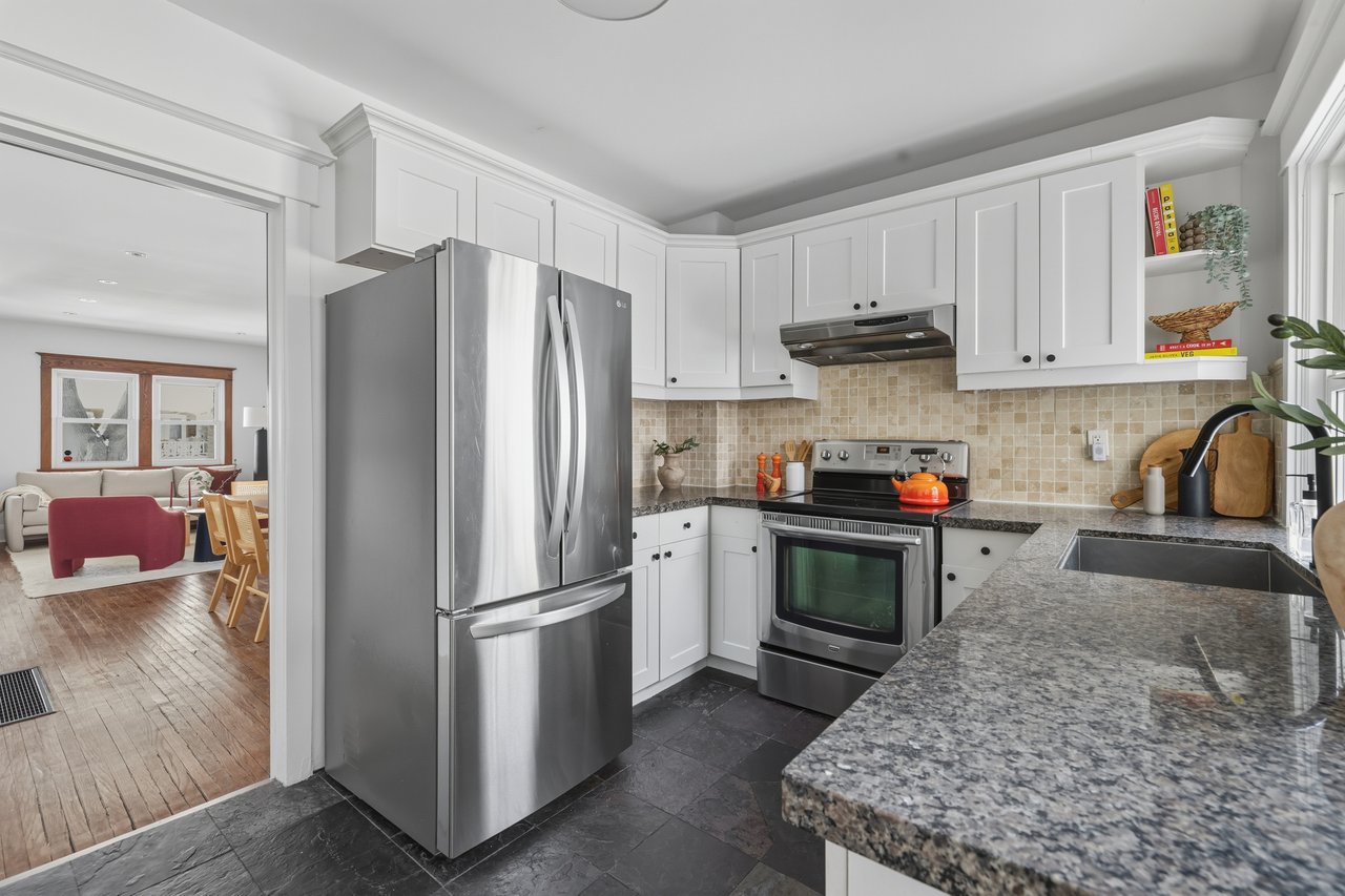 Inside on the main floor, a family room and living room give you plenty of space. The kitchen layout is perfect for cooking with family. No immediate neighbours on the north side means 193 Gainsborough is brighter than most, with privacy and natural light in every room. Original wood trim and oak floors add beautiful character to the space and its functionality.