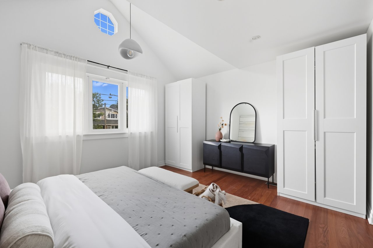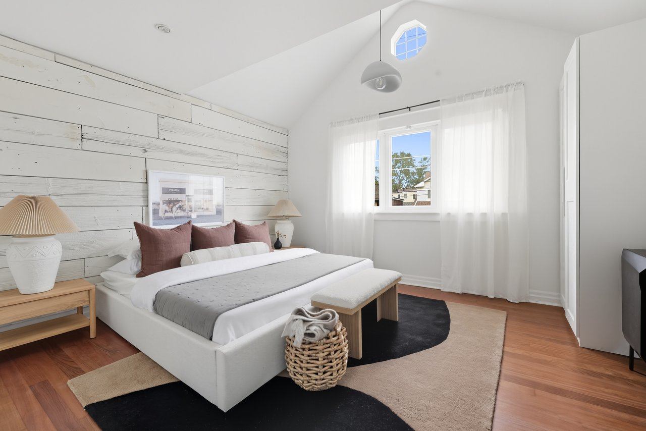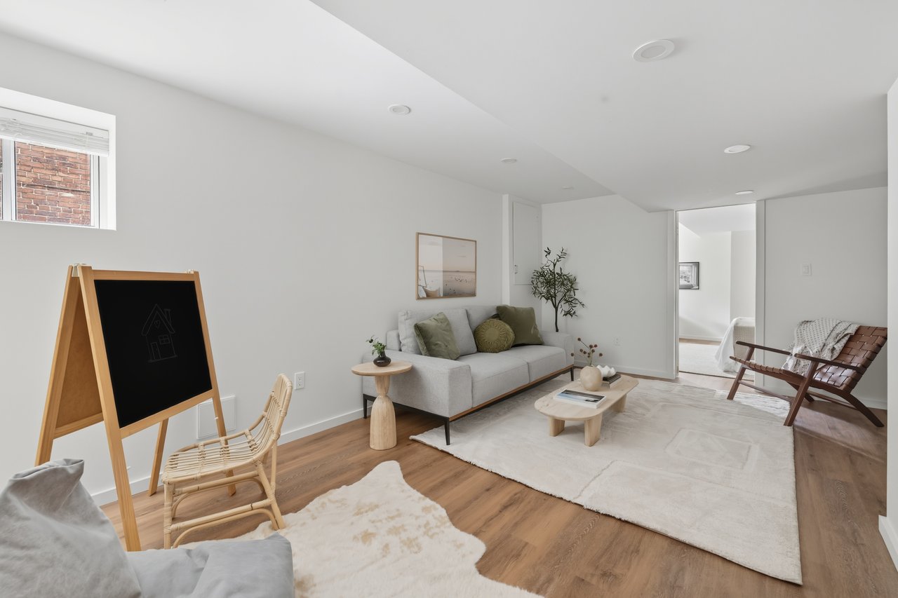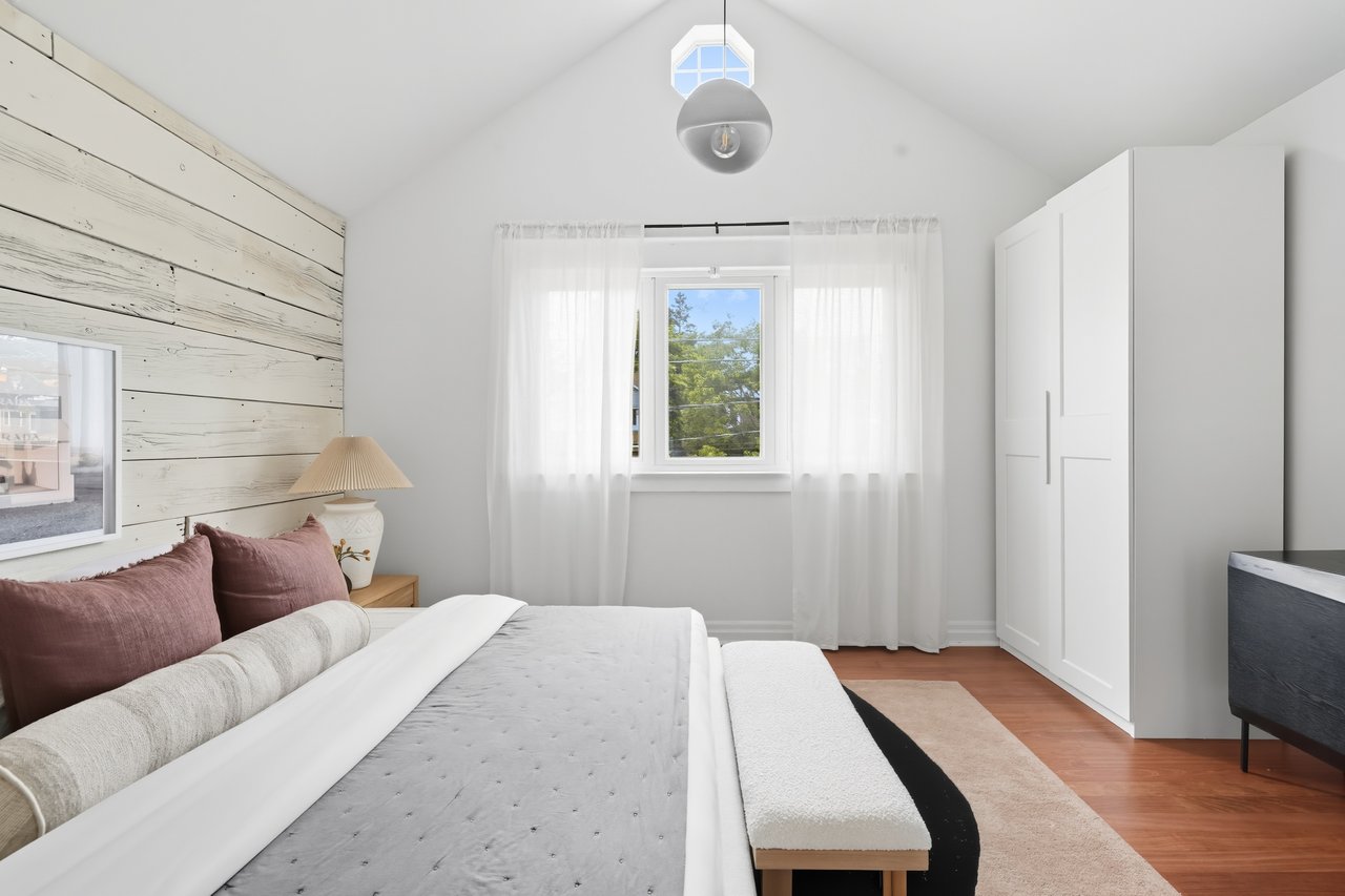 Upstairs, the primary bedroom feels like a retreat, its vaulted ceilings lifting the space and giving it room to breathe. Two more bedrooms add flexibility for family, work, or guests. The renovated basement, fully spray-foam insulated, is ready for an in-law suite, tenant space, or a spot to host Saturday night hockey.