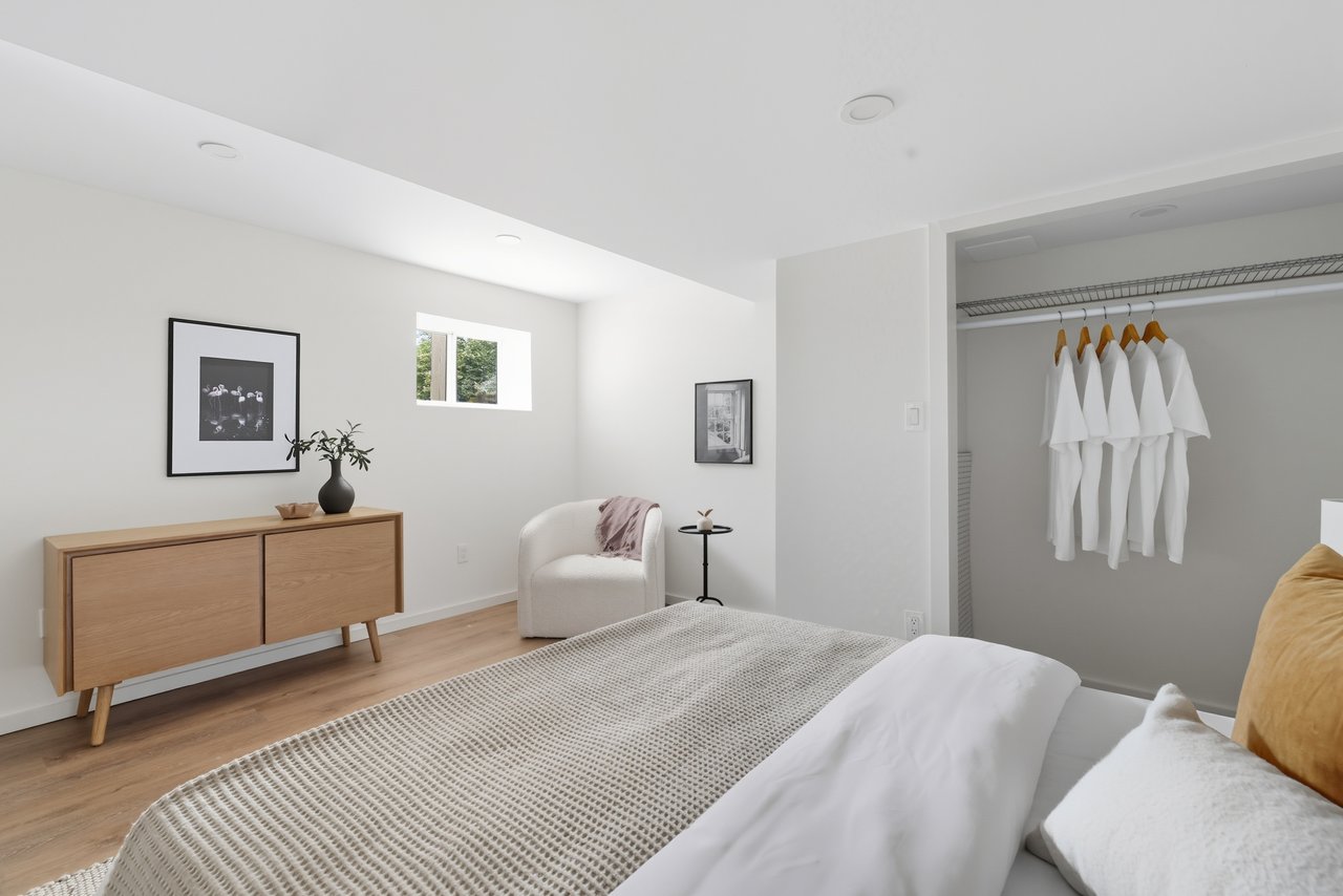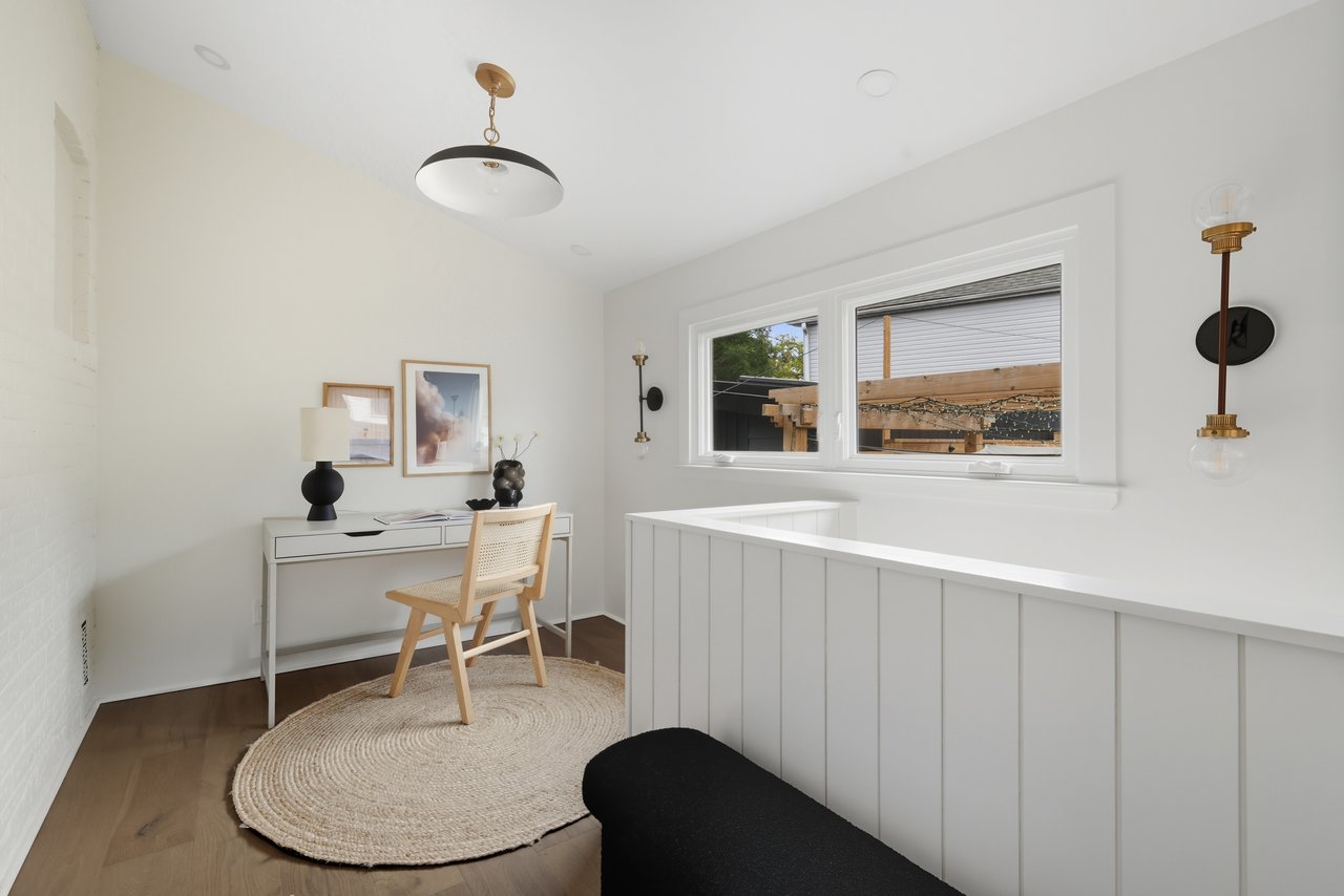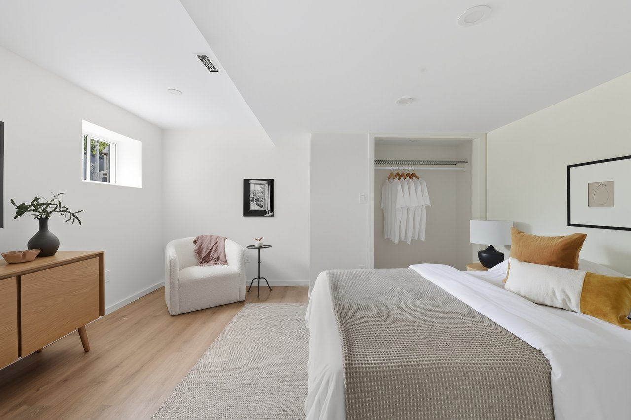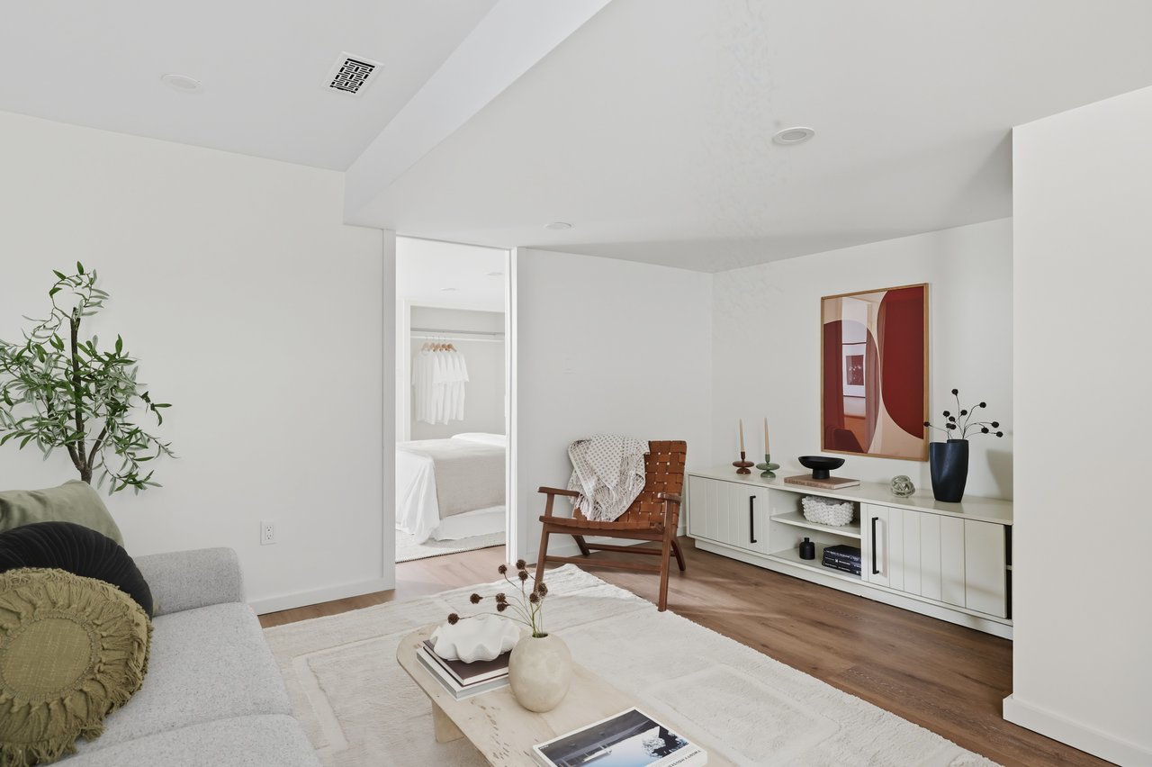 Upstairs, the primary bedroom feels like a retreat, its vaulted ceilings lifting the space and giving it room to breathe. Two more bedrooms add flexibility for family, work, or guests. The renovated basement, fully spray-foam insulated, is ready for an in-law suite, tenant space, or a spot to host Saturday night hockey.