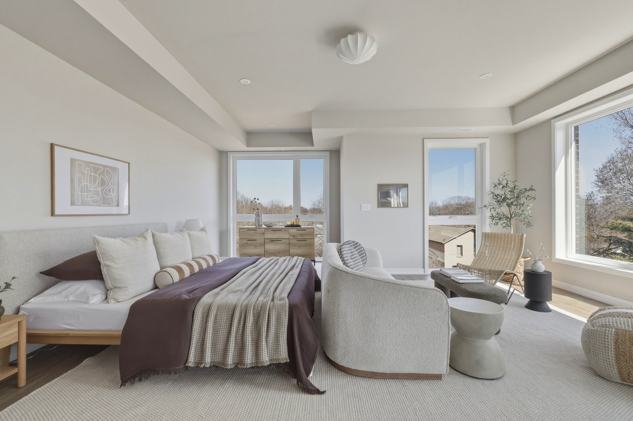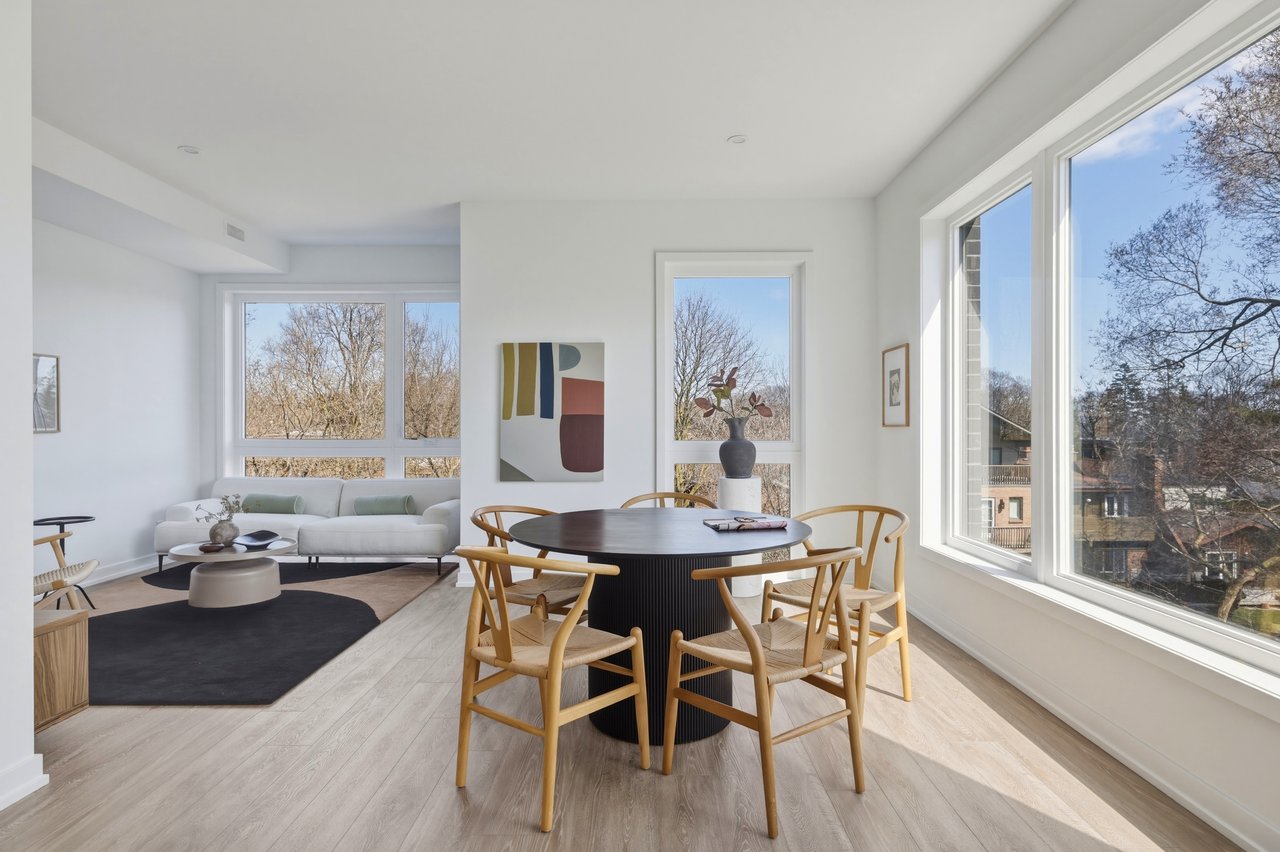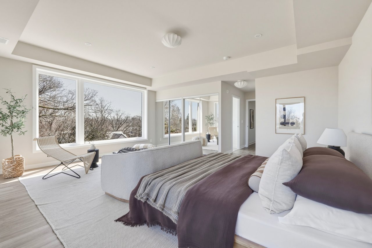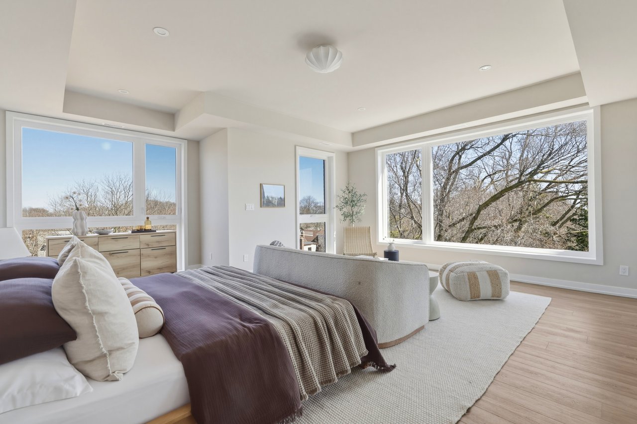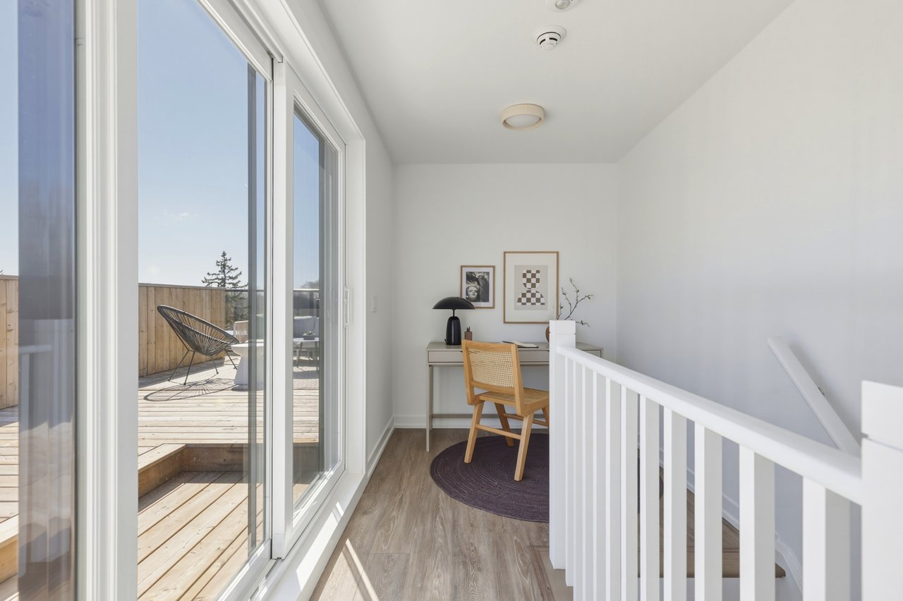 Tucked into the quiet edge of Birchcliff Towns, this residence feels quietly set apart. Designed from the start as a single home, combining two units into one seamless layout, it lives as one, just under 2,500 square feet of space that never asks you to give anything up. South-facing and wrapped in trees, light moves easily from room to room, giving the home that calm, elevated, almost treehouse feel.