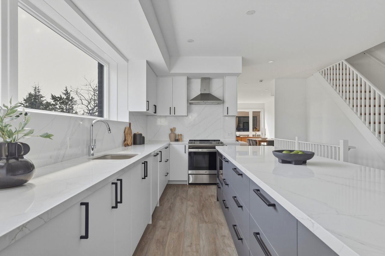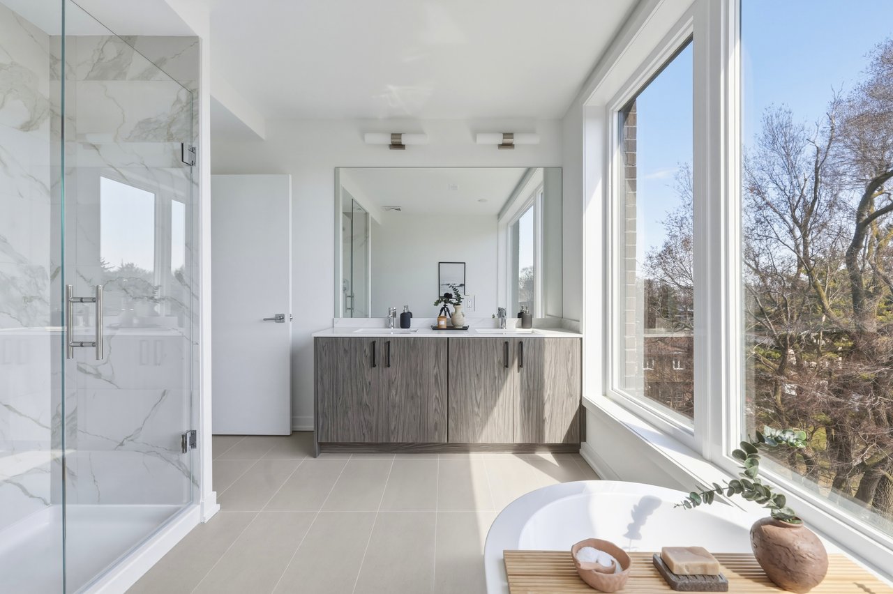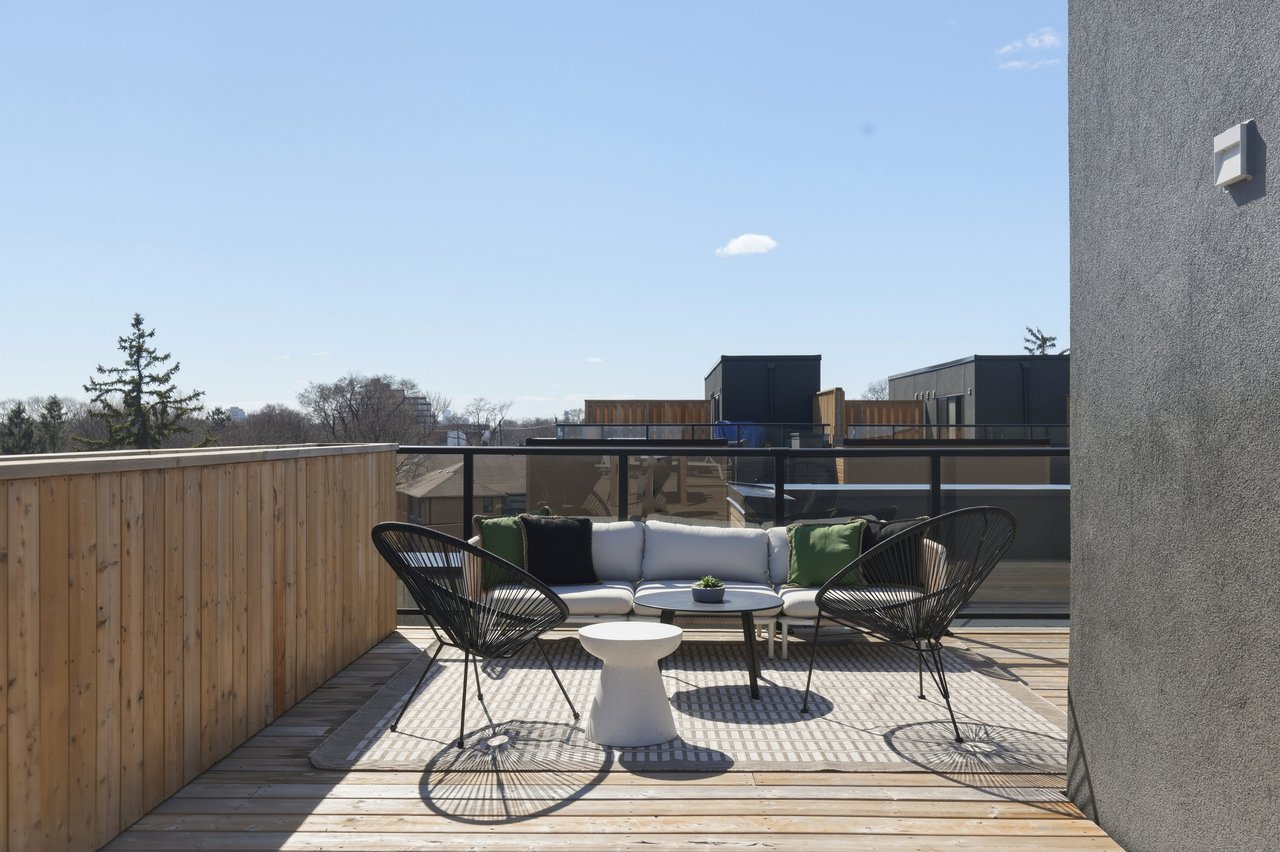 Three levels unfold with intention, offering real separation between living spaces while still feeling connected. A private elevator links it all, making movement between floors easy, whether it's groceries, guests, or simply choosing not to take the stairs. At the top, the rooftop terrace becomes a natural extension of the home, where BBQs carry into the kitchen and evenings flow without interruption, with views over Lake Ontario, the Birch Cliff treetops, and the city beyond as it shifts with the seasons. Two-car parking and two lockers handle the practical side with ease, while the home itself stays simple to manage.