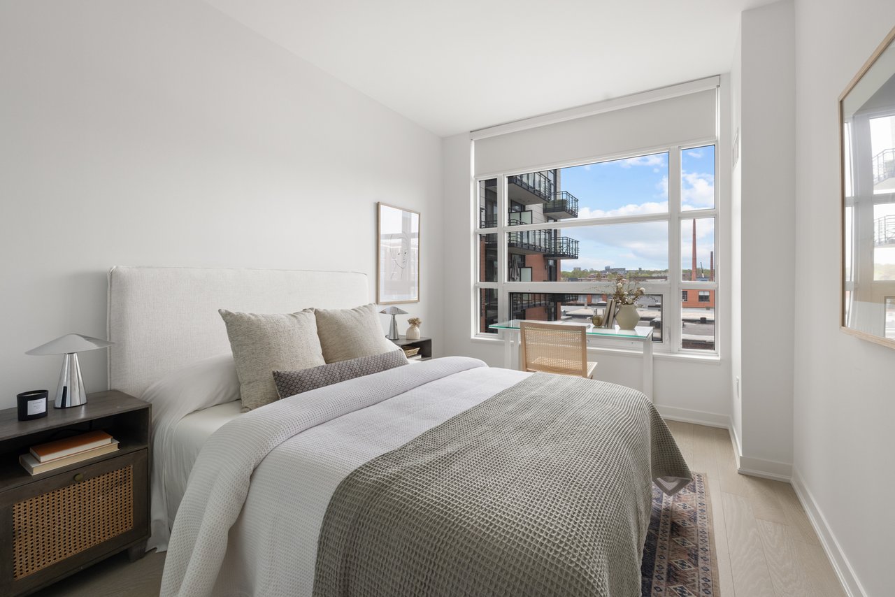 Suite 502 at 88 Colgate offers what most Leslieville condos don't: real privacy. Tucked into the sheltered north courtyard, this one-bedroom looks out over treetops, historic smokestacks (home to chimney swifts!), and the rooftops of Riverdale. It's a peaceful view with personality - and just the right amount of sky to catch the colour of both sunrise and sunset.