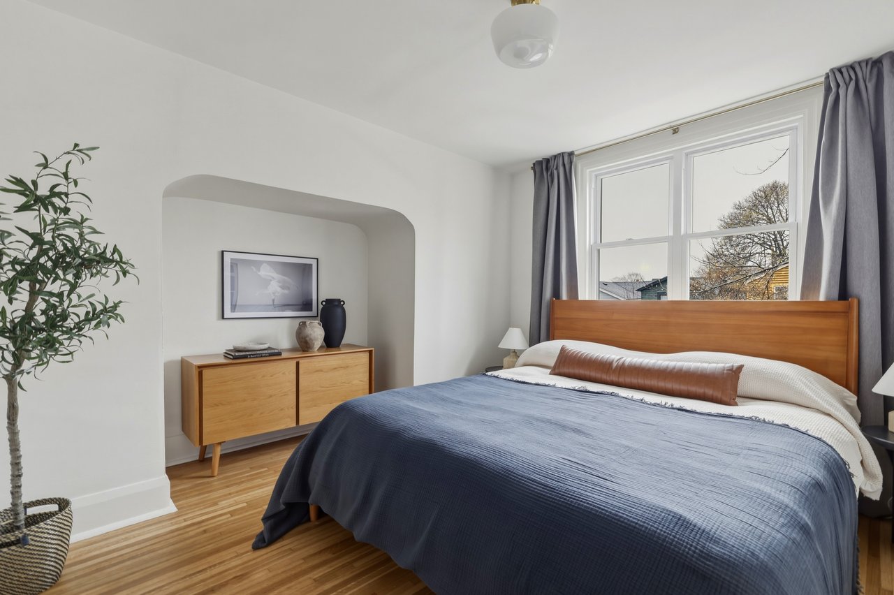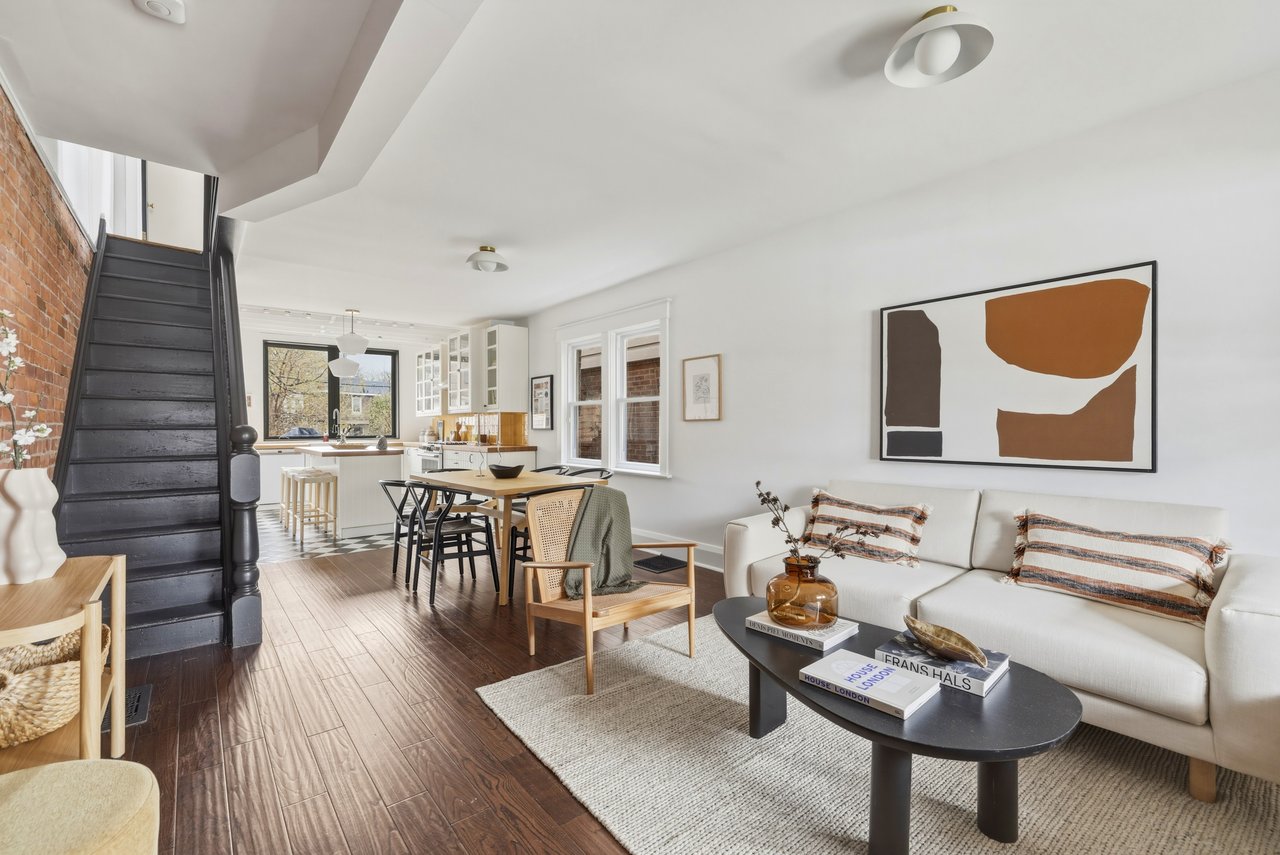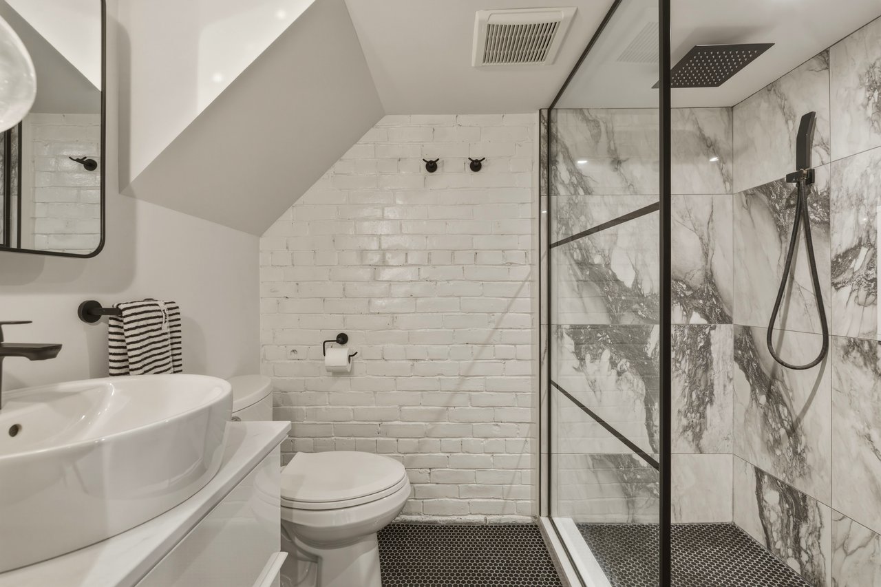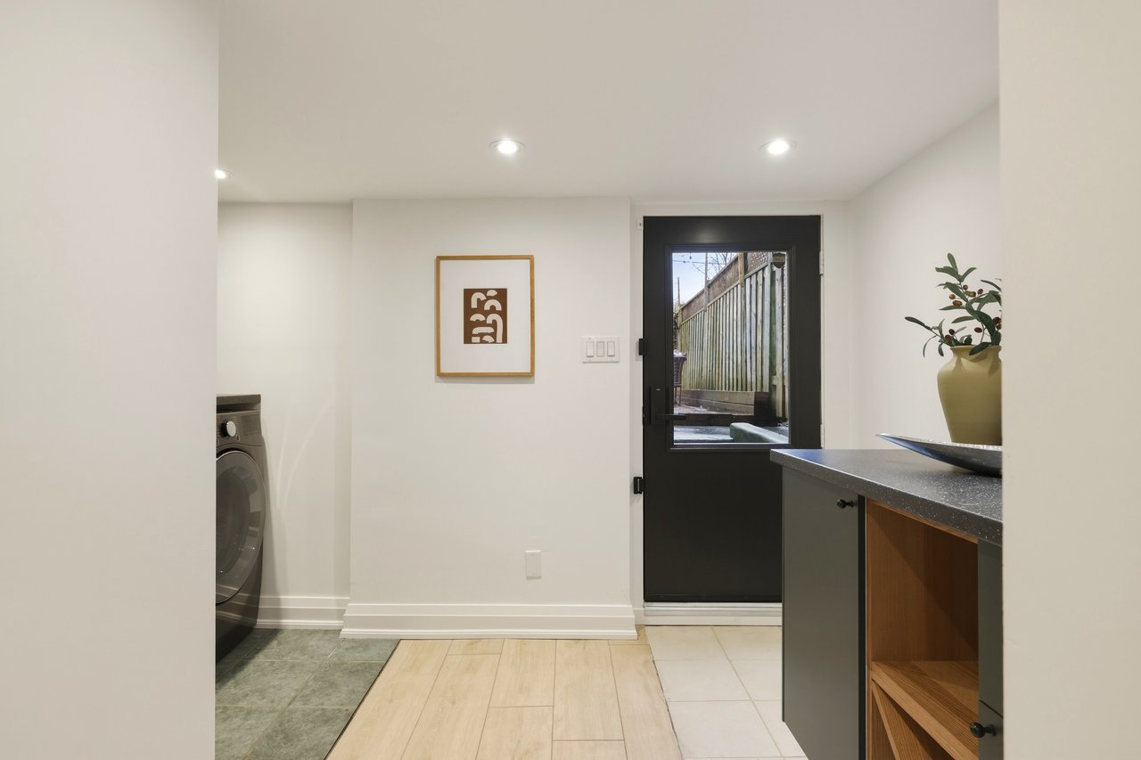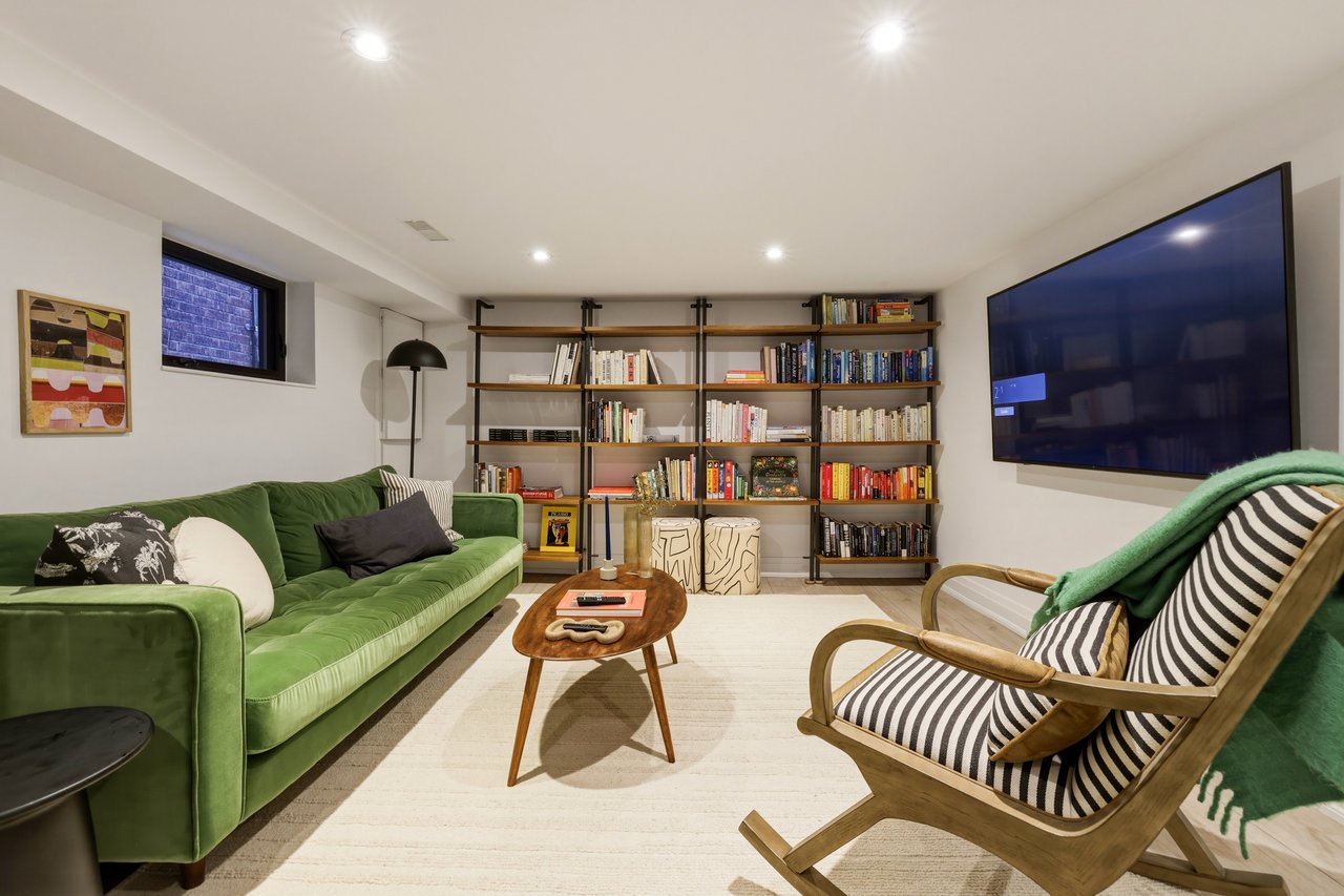 Exposed brick carries through the open main floor, living, dining, and kitchen connected front to back. Three generous bedrooms upstairs flex for whatever life looks like right now. The basement walks straight out to the yard with a mudroom and laundry at the entry. The kind of layout that makes entertaining feel easy and school mornings feel manageable.