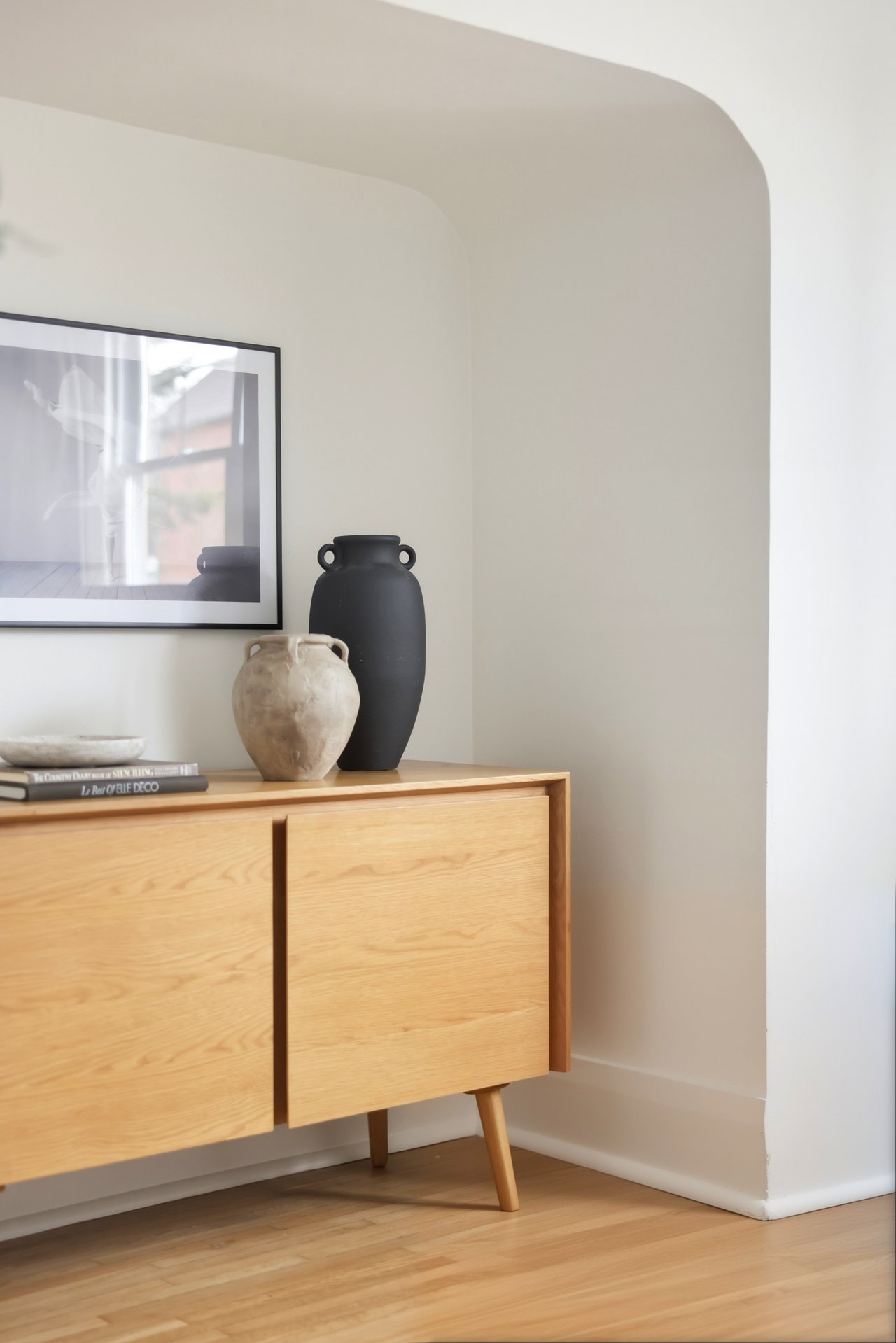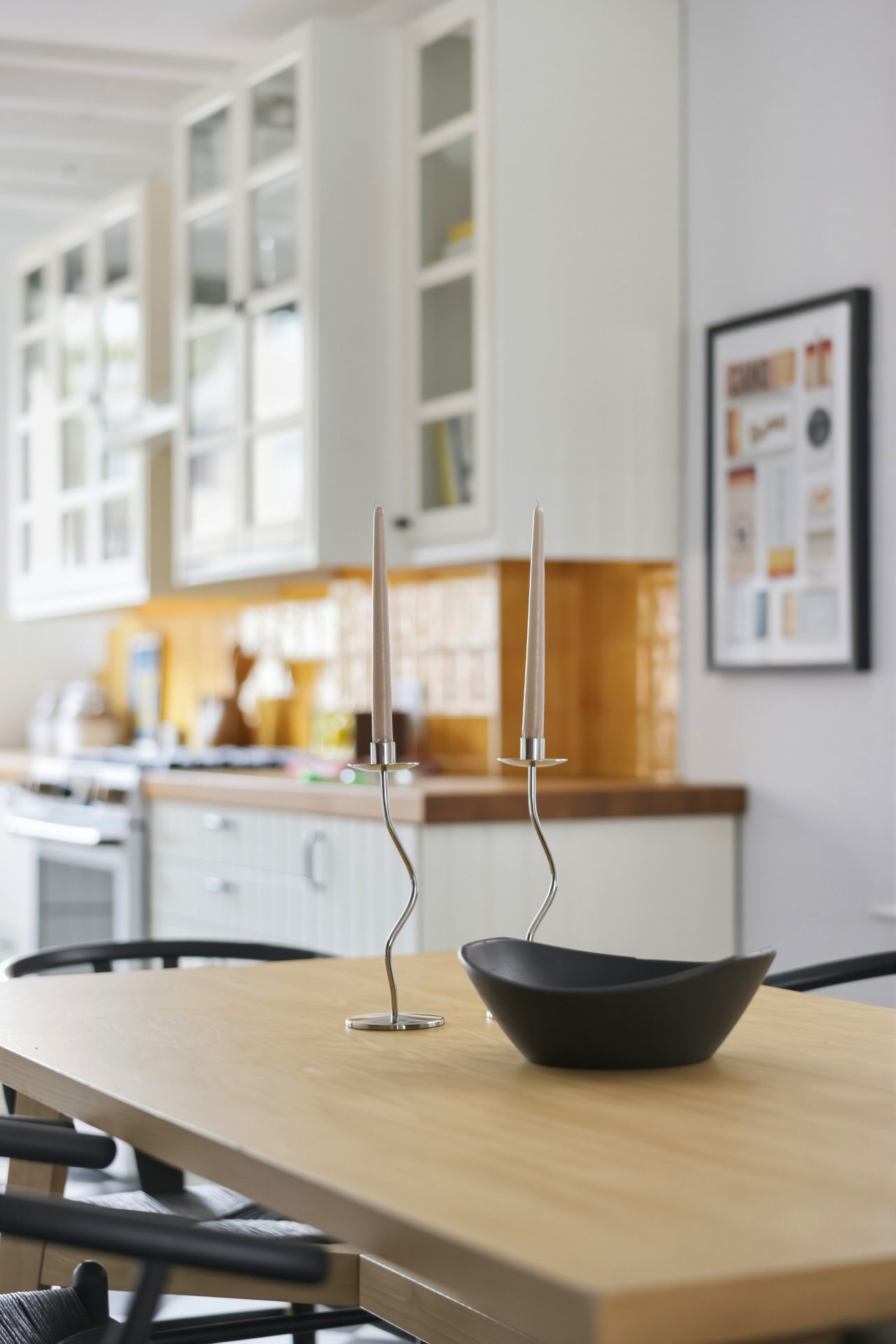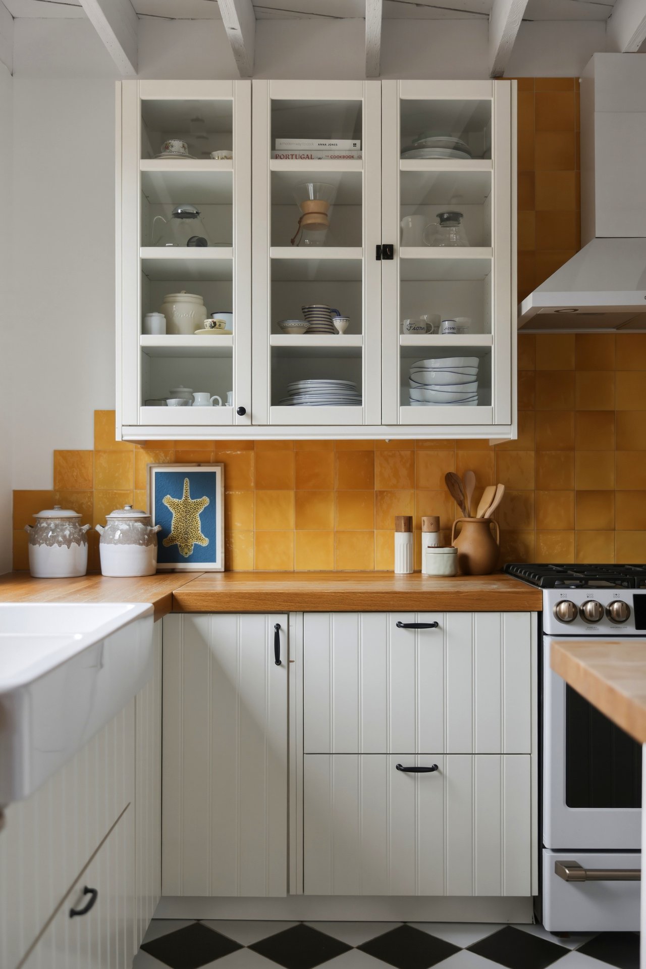 Inside, the kitchen window does something most kitchens don’t. It frames the space like a painting.